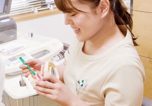 患者様の口腔内の状況に合った歯ブラシをご紹介しながら、患者様の口内に合った歯磨きの方法をご指導いたします。